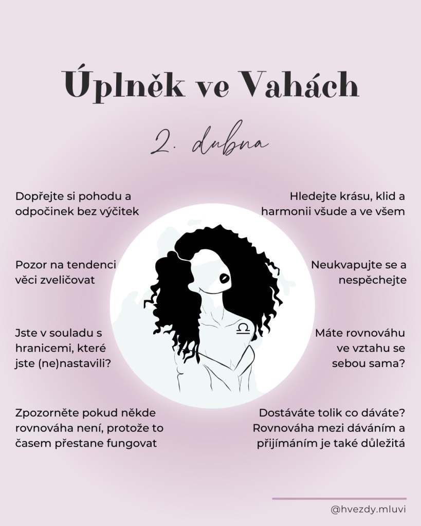 V noci ze středy na čtvrtek 2. dubna nastává úplněk ve znamení Vah.